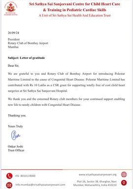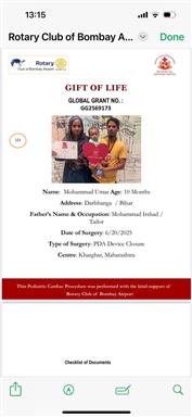 The Rotary Club of Bombay Airport (RCBA), under the leadership of D. . .