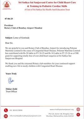 Sharing a letter received from SSSSH addressed to the President Apu. . .